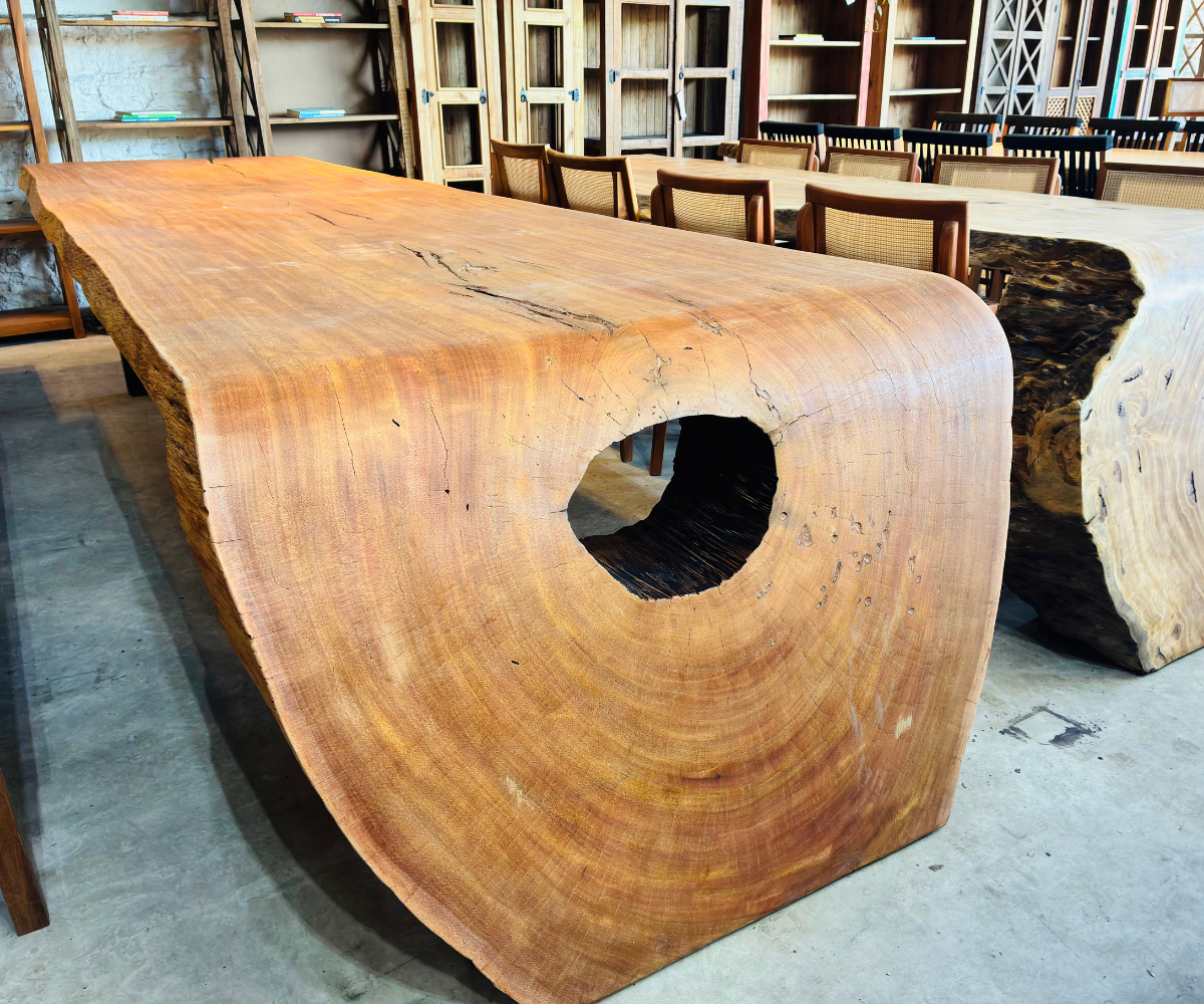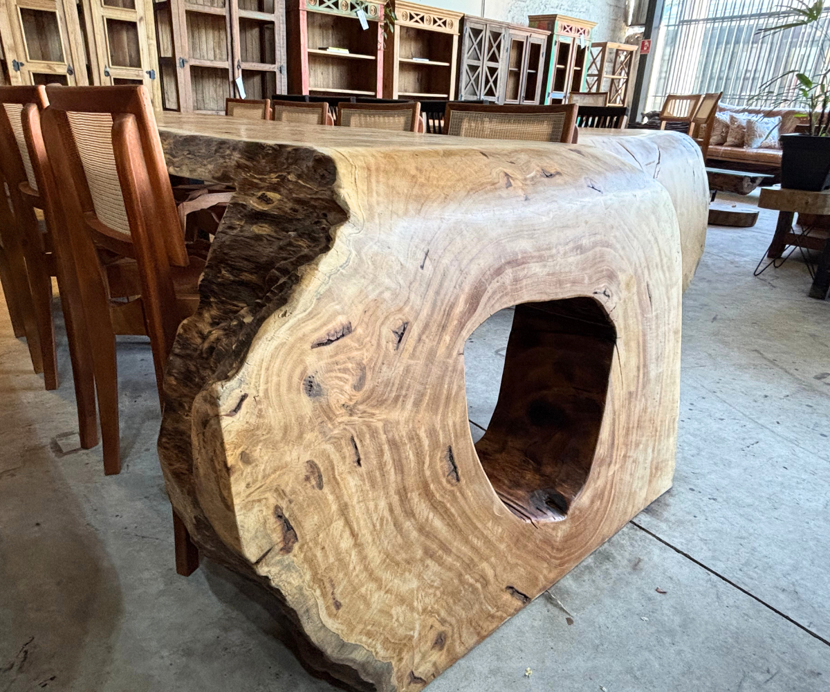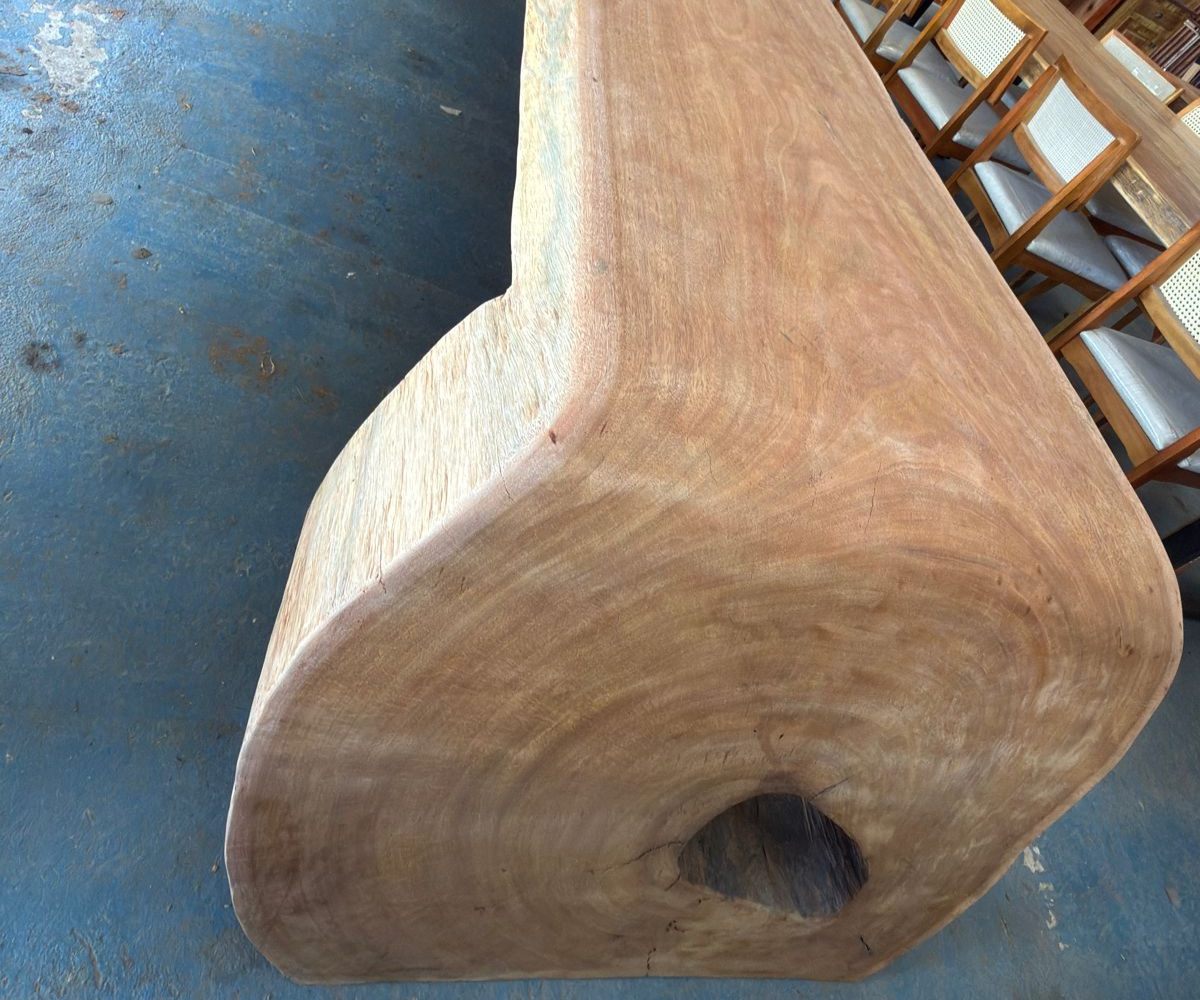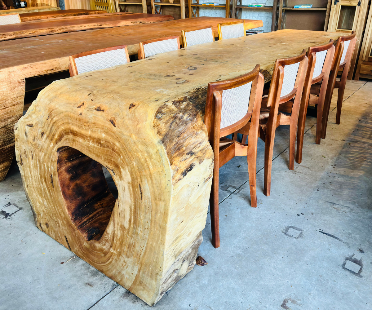 As Mesas Cascata da Design Rústico Móveis são peças de grande impacto visual, ideais para quem busca exclusividade, presença e sofisticação em ambientes residenciais ou comerciais. Com bordas naturais e desenho orgânico, cada mesa se destaca pela imponência da madeira e pelo equilíbrio entre estética e funcionalidade.