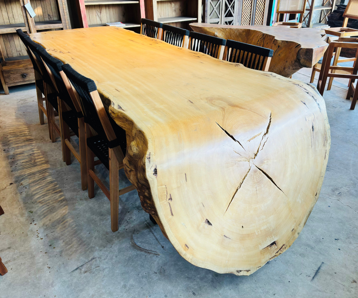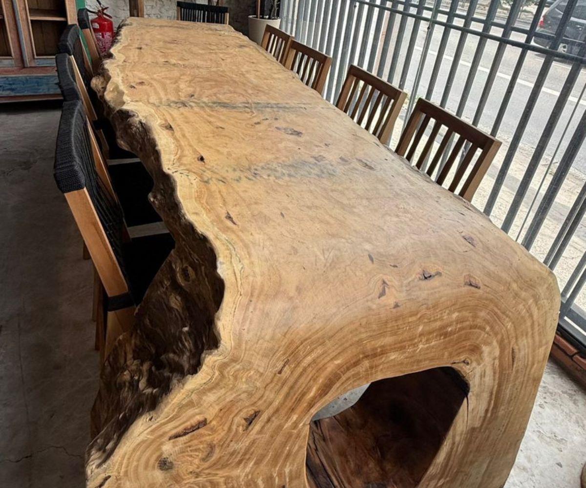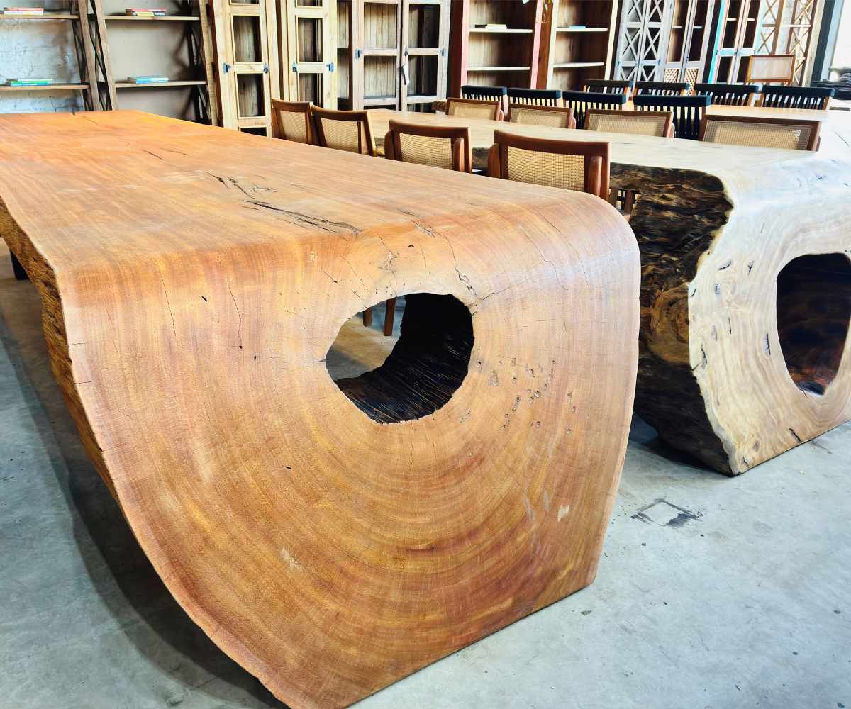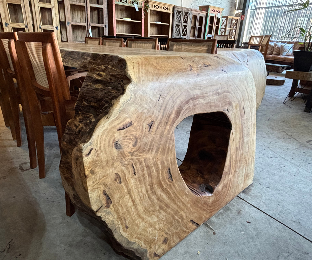 As Mesas Cascata da Design Rústico Móveis são peças de grande impacto visual, ideais para quem busca exclusividade, presença e sofisticação em ambientes residenciais ou comerciais. Com bordas naturais e desenho orgânico, cada mesa se destaca pela imponência da madeira e pelo equilíbrio entre estética e funcionalidade.